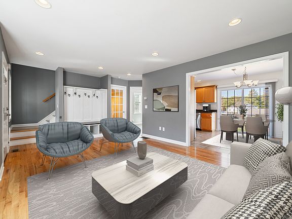 Nestled on a quiet street in the desirable Town Plot neighborhood, this 2014 Colonial is bright, sunny, and inviting. The first floor features a living room, dining area with elegant wainscoting, kitchen with tile flooring, convenient half bath, and laundry, all enhanced by beautiful hardwood flooring that continues throughout the main and upper levels. The kitchen, with oak cabinets and stainless steel appliances, flows seamlessly to the sliders that open to a paver patio-perfect for outdoor dining, entertaining, or relaxing in the spacious, level backyard. Upstairs is home to three bedrooms and a full bath with a double vanity, offering both style and convenience. The finished basement spans 500 sq ft, with 288 sq ft of finished space featuring built-in shelving and vinyl flooring-ideal for a family room, home office, or play area-while the remaining area is dedicated to storage and utilities. Additional highlights include a fenced yard, central AC, and gas heat. This home is ready for you to move in and enjoy all the comfort, space, and thoughtful details it has to offer.