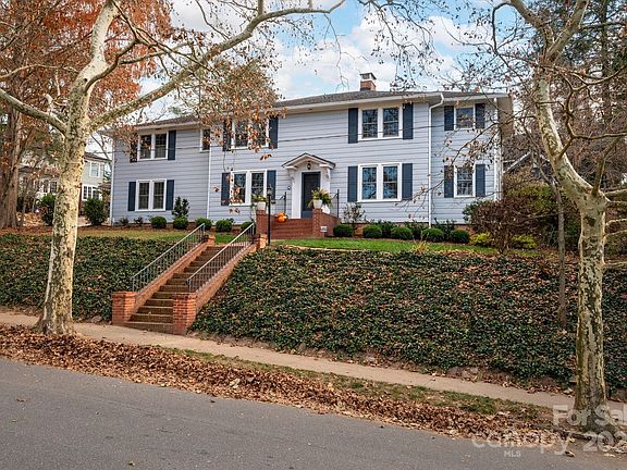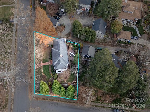 This charming 1920s home, on iconic Evelyn Place, is nestled in Grove Park amidst old-growth trees and wide, sidewalk-lined streets. Sitting above street level, away from the bustle of Kimberly Ave, on a quiet, private corner lot, there is much to love about this house and its location — 1.5 miles from downtown and blocks from Charlotte Street's E.W. Grove Park, Jettie Rae's Oyster House, Owl Bakery, Taco Temple, and Bone & Broth. With gleaming hardwood floors and abundant natural light, the main level boasts an entertainer's kitchen with plenty of counter and cabinet space. When hosting or relaxing, enjoy the spacious family room, living area with gas logs, cozy sunroom, and outdoor private courtyard. Upstairs holds four spacious bedrooms and two full baths, along with a bonus office space. Low-maintenance yard with formal landscaping and off-street parking. This home is in one of the rare walkable neighborhoods where you are close to town, but feel tucked away from it all.