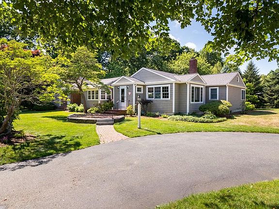 Enjoy easy-living in this sprawling, open concept ranch. Nestled in a lovely neighborhood setting, this home offers a spacious layout that's perfect for guests and expanding families alike. Entertain from your oversized kitchen with custom cherry cabinets, center island and new appliances. Open and airy, the newer addition was thoughtfully designed to maintain the charm and detail of the original home. Soaring cathedral ceilings, exposed beams and picture windows allow natural light to stream in. On each wing of the house you will find two bedrooms. In addition, there is an office/extra room and a half bath/laundry room. Even the basement offers potential with full-height ceilings perfect for storage and pursuing hobbies. With a layout this expansive, the possibilities are endless! Outside, the deck overlooks a lush backyard, with tall trees and flowering gardens. Enjoy a private oasis while being a stone's throw from schools, the town common, library and nearby beaches.