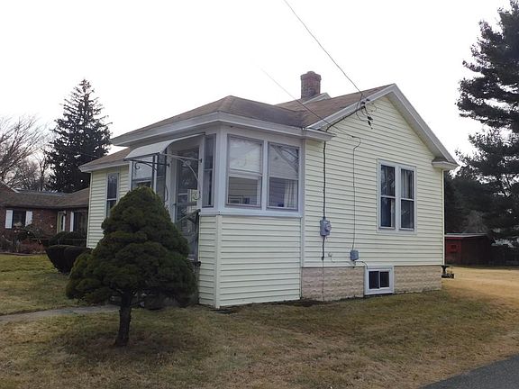 You will be lucky living here in this charming ranch style home with enclosed front and back porches. Spacious eat-in Kitchen with vinyl floor, built in hutch and large 6x6 pantry with lot of cabinets. Good size dining room or extra bedroom with wall to wall carpeting. Master bedroom with closet and wall to wall carpeting. Large living room with wall to wall carpeting and pretty stained glass door leads to enclosed carpeted front porch to sit back and relax on at the end of a long day. Other features include vinyl siding,1st floor washer and dryer hookups, Oil heat but there is gas to the house, large finished game room in basement and convenient work benches and storage shelfs. Large beautiful backyard. Just minutes from parks, schools, highways and shops. This home is being sold in "AS-IS" condition. Call today.