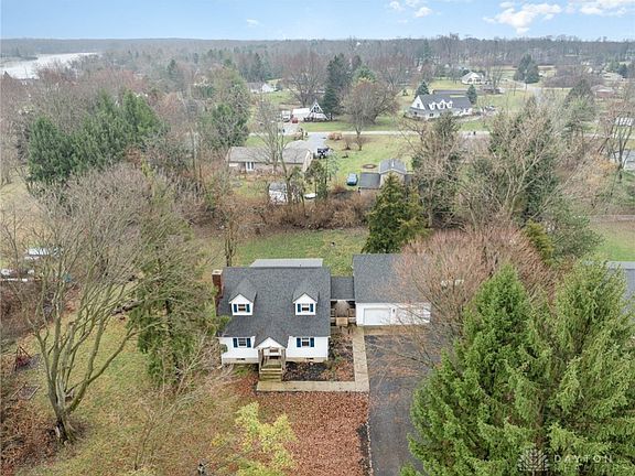 Wonderful opportunity in Lakengren community, near Eaton. 4-bedroom, 2-story home on over 3/4 acre. Many big-ticket renovations done. New Roof in 2020, new siding 2021, and new HVAC system in 2020. Fishing, swimming, water skiing and all the best of lake life, only 4 miles from Eaton High School. Short walk to community swimming pool on Fiord Dr., and to lakefront. Primary bedroom on ground floor with en-suite bathroom. Extra 1/2 bath downstairs. 18x12 Living Room for entertaining and separate dining room leading outside to back deck and patio. Head into kitchen, that leads out to garage and driveway. Great design for unloading groceries and accessing front and back yard. Wood/laminate flooring gives a lake house feel throughout. 3 additional bedrooms upstairs, all with double aspect (two windows) and big storage closets. Shared full bathroom off the hallway. Expanded driveway with room for an RV and/or a boat. Two-story 2-car garage with loft storage area and electricity. Could convert upstairs to an office or workshop. Full, unfinished basement for indoor storage. Ready to finish into entertainment area. Has stair access up to back yard. Motivated sellers understand the need for some updates over time, but home is fully functional now. Duct work for HVAC does not extend upstairs. Whirlpool water heater 2009. Freshly painted in December 2024. Well on property was used for gardening and landscaping. Community has City water and sewer. Well for decorative purposes only. Wood fireplace behind drywall could be opened up. No warranties on chimney or other mechanicals. All current appliances stay.