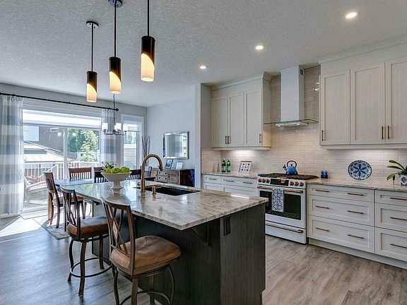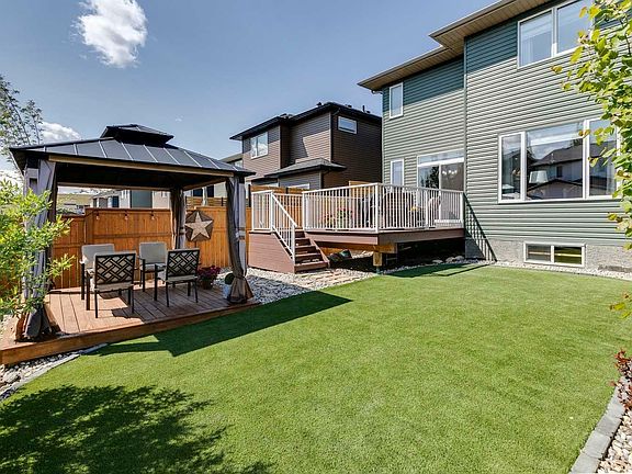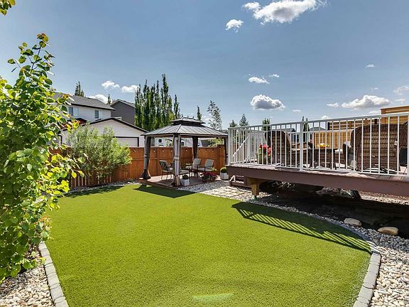 A pristine, upgraded home with a low-maintenance backyard oasis in the family-friendly neighbourhood of Fireside. With over $50,000 of upgrades since it was built, this house has everything you need to make it a home for many years to come. Enter through the new phantom screen door into the welcoming front entrance. Walk past the den/office and a 2-piece powder room to enter the fully upgraded kitchen. From the granite countertops, modern all-white GE Cafe appliances including a gas range. Full-height cabinets with under mount lighting, finished with crown molding, and gold fixtures. These features continue into the butlers pantry accenting the ample shelving, wine rack, and hidden microwave. The living room has a brand-new fireplace surround finished with open shelving and closed built-ins for added storage. Upstairs, a bonus/media room with new blinds, separating the two good-sized bedrooms from the primary. The ensuite features a soaker tub, standing shower, walk-in closet, water closet and double vanity. You'll also find the laundry conveniently located on this level with brand-new floating cabinets to keep it clutter-free. An unfinished basement is left for you, leave it as a storage space, add a home gym, or complete it with two more bedrooms and a play area for the kids. This home is equipped with Gemstone lighting, dimmer switches to create your desired ambiance and a Ring doorbell for added security and convenience. Outside is the entertainer's dream. New paving stones, freshly stained deck, maintenance-free landscaping including artificial turf. Relax by the fire under your new pergola. The quiet alleyway off the back provides extra separation from the neighbours. After you're done spending your day outside, cool off in the house with central air conditioning. The location is hard to beat. Extra wide streets with plenty of parking, steps away from a public and a catholic elementary school. Just a 5-minute drive to Bow Valley High School. Fireside is just 15 minutes to Calgary City Limits and 40 minutes to the mountains. The community offers fire pits, a toboggan hill and hockey rink in the winter and a playground and bike pump tracks in the summer. Check out the Fireside HOA for more community features! Don't wait for pre-construction, this like-new home is available now!