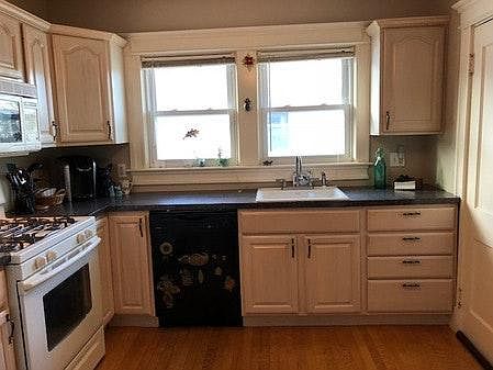 Updated 2/bed. + office. Eat in kitchen. Dishwasher, disposal, gas stove, built in microwave. Dining room Living room Enclosed front porch Back porch Laundry in basement / storage Hard wood floors New gas heating system, w/s is not included, two car TANDEM PARKING for small to mid size cars This apartment is on the second floor of a two family house. #8966456
