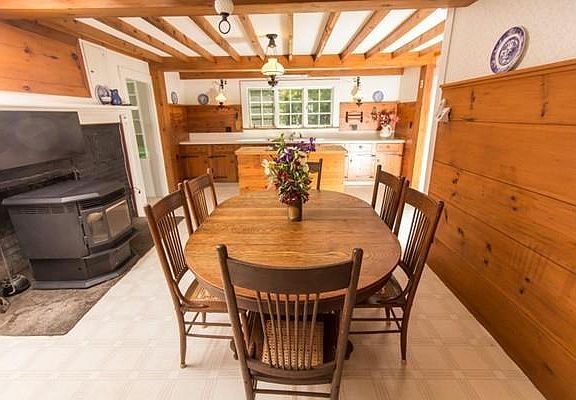- Kit Dscrp: Flooring - Vinyl, Pantry, Dining Area, Kitchen Island, Wood / Coal / Pellet Stove, Chair Rail