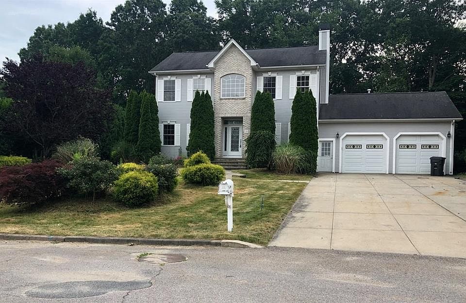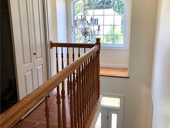 3 Bedroom Colonial, 2.5 bath located in desirable Hilltop Estate. Home includes central air, security system, 1 partially finished room in the basement. The entrance features a larger foyer with viewing to open concept light fixture above to large window to the front of the home. Kitchen has granite counters, center island, wood cabinets, window over sink and slider to the back private deck with updated decking. The yard is secluded with white PVC fencing around entire backyard portion of this .828 acre lot of land. Hardwood floors throughout the home are in great condition. Railing on stairs needs to be replaced as well as some light fixtures, 1 toilet cover, 1 bathroom sink, mirror over fireplace, some doors and door jambs. Some rooms have holes in the walls throughout the house that would need to be patched and repaired. Second floor includes ample closet space in hallways and bathrooms, master with en suite and large walk in closet, 2 smaller bedrooms with smaller closets and separate full bath on second floor, laundry also is located on second floor. Downstairs has plenty of closets for pantry, storage, etc. Heated 2 car garage, with separate entrance and mudroom. Large driveway with 2 to 4 car spaces. . Priced to sell taking into consideration repairs necessary. Great house with a lot of extras and the potential to make it your own. Property being sold AS-IS.