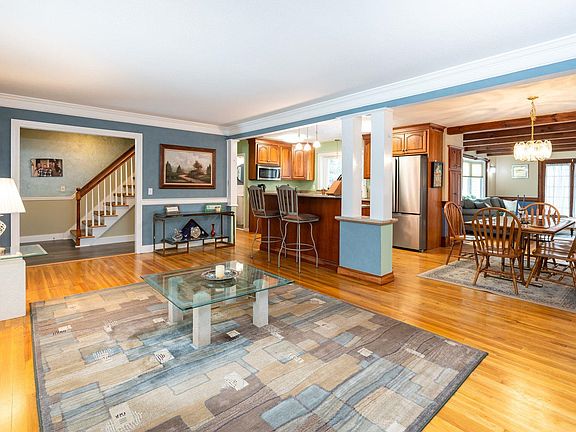 This 4 bedroom 2 1/2 bath Colonial home in highly sought after Bedford NH is coming to market for first time in 20 + years, boasting an oversized lot with lush landscaping and potential for a pool in private rear yard. The Open Concept First Floor greets with newly updated kitchen featuring granite countertops, stainless appliances, a Hi Sense refrigerator, gas stove and maple cabinetry with crown moldings and many convenient built-ins. The spacious living room has a cozy gas fireplace and a large bay window, connecting to the dining room and the TV/Family room with its access to " Bob's Grill Room" for year-round safe grilling for the Master Chef of the house. Additionally, there's a finished 3 season porch with mahogany floors and plexiglass as well an screens for added flexible use. Upstairs, the enormous primary bedroom offers a remodeled Spa-like bath and a custom walk-in closet.Three more bedrooms and a family bath complete the second floor.The lower-level features wonderful recreational spaces with a pool table and built-in storage closets, and additional unfinished area for storage. Auxiliary Mini-splits and a whole house fan ensure year-round comfort for those summer days. The beautifully landscaped yard includes a circular driveway and a welcoming Farmers Porch with Trex decking. This home is ideally located, just 5 minutes to shops, groceries, all major highways, golf and the airport, and within 1 hours to Seacoast, Mountains, lakes and Boston- LOCATION LOCATION!