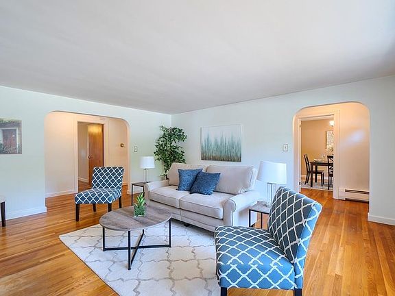 Don't miss out on the opportunity to own in the desirable Belvidere neighborhood of Lowell. This sunny ranch home is on a level lot with outdoor space for playing, gardening and relaxing. You even have your own fruit trees! The fully applianced eat-in kitchen offers plenty of counter and cabinet space along with a pantry closet The arched doorway leads to the light filled dining room complete with picture window and hardwood floors. Follow through the French door across the entry way into the large fireplaced living room with plenty of space for entertaining. Another arched opening leads you to three bedrooms all with hardwood floors, wonderful natural light and plenty of closet space. The large basement includes the laundry area with two wash sinks, cedar closet, full bath and lots of storage. Additional features include a sunroom off the kitchen with access to both the patio and back yard.