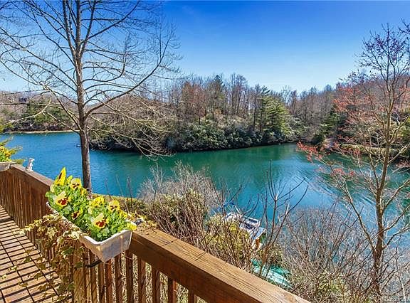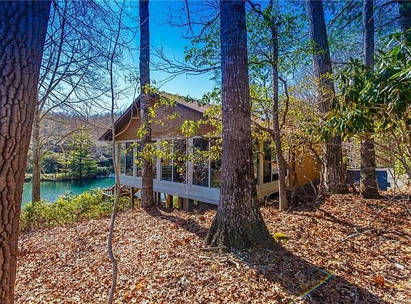 Stunning, unobstructed Lake Ticoa views from nearly every window in the house! This cozy house sits at the end of a cul de sac, on one of Connestee's most gorgeous lake lots with 219' of water surrounding the house. The great room boasts vaulted ceilings, a wood-burning fireplace & a wide open floor plan. The gleaming hardwood floors, and glass doors that open to the sun room & deck, make the great room bright, spacious & inviting. Surrounded by floor to ceiling windows, the sun room delivers panoramic lake views & access to the deck that overlooks the lake, private dock & pontoon boat. With 2 beds & 2 full baths on the main & a bedroom & full bath below, this home offers convenience for year round living and privacy for guests. The unfinished lower level space would make a perfect 2nd living area, rec room or man cave. The adjacent lake lot could be purchased adding another 146' of lake front. New residents pay the one-time $8K amenity fee, to enjoy the many Connestee Falls amenities.