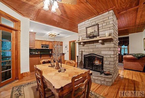 Charming bungalow nestled in the woods within a quiet neighborhood. Centrally located with easy walk to the Serenity Chapel or the trail to Mule Kickin' falls, yet year-round accessible by Norton Road. Two sided log burning fireplace serves both living and dining room. Large screened porch with ceiling fans feels immersed in the Carolina woods, and backs up to a lush 34 acre conservation easement with creek. Kitchen features a dual fuel range and convection oven with programable warming drawer, an Advantium convection microwave, and a large Kitchenaid refrigerator/freezer/ice-maker. All in all, a comfortable place to spend time in the Carolina mountains. CLUB MEMBERSHIP IS NOT REQUIRED, but for those interested, it is available for an additional fee.