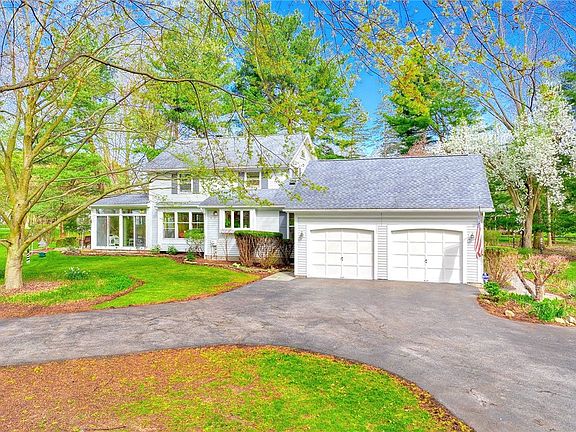 **TUCKED AWAY - PRIVATE SETTING!** Just shy of an Acre of Lush, Mature Gardens and Landscaping! 3 BEDRM/2.5 BATH! 2800+ Square Feet!! TRUE ONE-FLOOR LIVING in the Town of PERINTON with PITTSFORD SCHOOLS!! This Home offers FIRST-FLOOR LIVING with a GENEROUS PRIMARY SUITE featuring SAORING TRAY CEILING, EN-SUITE BATH with Separate Sinks, a Bright STEP-IN SHOWER w/SKYLIGHT, and a Walk-in closet * OPEN-CONCEPT LAYOUT! DRAMATIC 2-STORY FOYER/ENTRY W/HARDWDS! VAULTED GREAT ROOM w/GAS FIREPLACE and NEW Carpeting! French Doors lead into a Formal OFFICE/DEN w/HARDWDS . . overlooking the PRIVATE Yard *FORMAL DINING ROOM with a Bay Window! UPDATED KITCHEN with Hardwoods, QUALITY WHITE CABINETRY, GRANITE Countertops, and a Garden window for plants over the sink *KITCHEN opens to LIVING ROOM w/AMAZING BRICK Gas Fireplace and Built-in cabinetry! A BRIGHT 3-SEASON SUNROOM connects the Indoor and Outdoor spaces, leading to a PRIVATE PATIO! 1ST FLR LAUNDRY & HALF BATH* TWO Spacious 2nd FLOOR GUEST BEDROOMS, each with ample closet space! FULL BATHROOM with a Tub/Shower combo *BEAUTIFUL HARDWOOD FLOORS through most of the First Floor! Basement Workshop *2-CAR GARAGE! *CONVENIENT LOCATION!* Easy access to the expressway, just minutes from the canal, parks, and great shopping! *NEWER ROOF! *NEW CENTRAL AIR-2023 **Showings start Friday May 2 - DELAYED NEGOTIATIONS Thursday, May 8, at 12 PM. * * * * WATCH THE VIDEO !!!!!