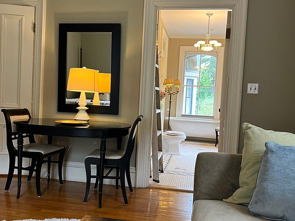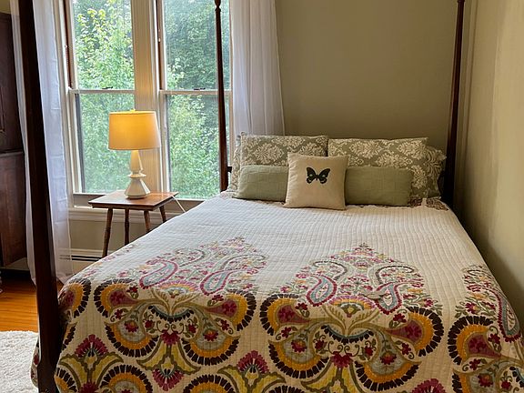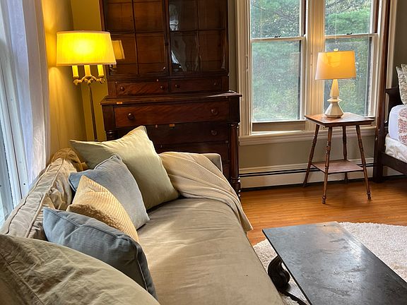Looking for ONE PERSON ONLY for this stunning suite in Victorian mansion in Jamaica Plain. Five minute walk to Orange Line AND Green Line (39 Bus to the Medical area). Gorgeous big bedroom/living room combination, plus stunning ensuite bathroom with marble and china antique fixtures, 6 foot long soaking tub, plus modern tile shower with dual shower heads. Adorable kitchen is small but efficient, with stainless sink and refrigerator, plus modern air fryer, microwave and induction cook top. Lots of lovely Victorian detail here, outside and inside -- tall ceilings, detailed moldings, large windows to North, East and South. Large Ten minute walk to Jamaica Pond and Arnold Arboretum. Five to ten minute walk to lots of restaurants, shops, the post office, banks. Walk or bike to get groceries at City Feed, Whole Foods or Stop and Shop. Two short blocks to bike path to downtown Boston. Short bike ride or walk to all parks in the Emerald Necklace, including the famous Forest Hills Cemetery. Parking unrestricted on street -- no permit required. Off street parking may become available over the winter. You are welcome to enjoy our stunning landscaped side and rear yard, furnished patios, outdoor wifi, perennial beds, gas grill, koi pond with waterfalls and even a hammock under our rare yellow magnolia! Eight fruit-bearing trees, three types of berry bushes, three types of grapes on a long pergola, and a vegetable garden. I'm the owner. I live on the first floor with my family. We are quiet, respectful and very friendly. We always welcome seeing our tenants in the backyard; we worked hard creating it, so we love to see you enjoying it. One small, hypoallergenic, mature dog will be considered. Utilities are in addition to rent, paid with the rent monthly, and INCLUDE ALL of the following: heat, electricity, and water. These total $128 monthly. High speed internet is available for $25 monthly if you want to share the expense with us. ONE PERSON ONLY -- sorry but we cannot accommodate couples. Looking for ONE PERSON ONLY with no pets for this space. You would be living on one of the loveliest historic mansions in Boston, and have your own spacious, private living room / bedroom suite with closet-kitchen and private bath and double shower. Magnificent grounds with fruit trees and koi pond. Six minute walk to dozens of talk out restaurants, banks, CVS, grocery store, post office. Off street parking may be negotiable. However parking is free and unrestricted in front of the house. Five minute walk to Green and Orange lines -- both! Two blocks from bike path to pedal to downtown Boston safely in minutes. A deep porch, framed by pairs of doric columns, wraps around most of the house; the west-side porch is a stupendous spot from which to enjoy the sunsets. Our home also has extensive grounds, with a two level yard, tiered by a serpentine, flat-stone wall; a dozen fruit bearing trees and shrubs (quince, blueberry, black berry, goose berry); three varieties of grapes growing on a tall pergola; a koi pond with waterfall and colorful comets and koi darting up to the surface. All this is only a few minutes from downtown Boston by T or bike along bike path, both only two blocks from us. We are located one block from the 39 Bus to the medical area (about a ten minute ride) and about a six minue walk to the Green Steet subway stop on the Orange Line. The rent, $2200, is based on a one year lease. Utilities -- including heat, hot water, and electricity -- average $170 monthly.