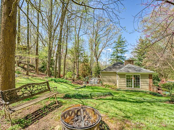 Classic mid-century ranch on a quiet street. A short walk to the Grove Park Inn. A short distance to downtown Asheville and North Asheville. This 4 bedroom /3 Bath home sits on a beautifully landscaped half-acre corner lot with a fire pit area in the backyard. Private rear deck and storage shed. Plenty of room to roam. Primary bedroom on the main level features a walk-in closet and ensuite bathroom. Bright rooms, gleaming refinished oak hardwood floors throughout. The oversized one-car garage provides ample space for parking or extra storage. Navien On-demand tankless hot water, New (2021) Lennox HVAC. Many updates and improvements. Peaceful setting in a mature neighborhood.