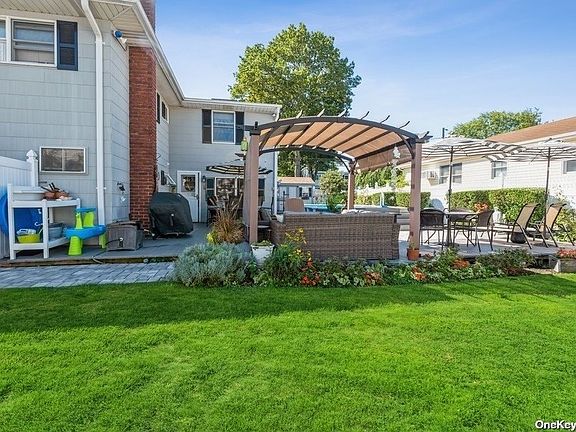 Feel right at home! This inviting West Islip home is boasting with pride of ownership. This Hi-Ranch floor plan is the perfect space for you and your extended family or a great income source as an investor (by permit). Enter into the spacious living room, which flows into an additional seating room area to entertain alongside an inviting dining room. This set up is perfect for large gatherings and entertaining. The kitchen just updated includes appliances, cabinets & counters. This home features a nice-sized primary bedroom, two additional bedrooms and a full bath. This house keeps giving with a spacious, home office. This house features two additional guest bedroom's on the first floor, a second living room/dining room leading into a eat in kitchen and a fully renovated bath. Perfect backyard for entertaining in private, fully fenced yard w/ above ground pool enclosed by a wood deck to host cook-outs. One-car garage w, entrance to the house. Act now, this home will not last!