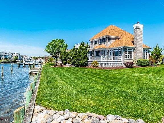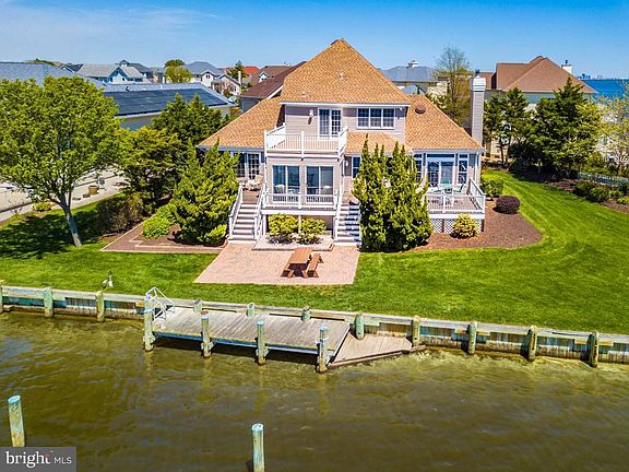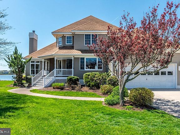 Best Waterfront location in Ocean Pines with boat dock and great access to open water. This home is situated on a beautifully landscaped lot, with southern exposure in the rear of the home. You will enjoy unobstructed panoramic water views & gorgeous sunrises. There is plenty of outdoor living from the 4 waterfront decks, covered front porch and large yard.Owned by long time owner. Home features a sunroom, elegant family room with floor to ceiling windows to take advantage of the natural sunlight and water views. This home offers 3 bedrooms, all featuring a private bathroom. The first floor master suite includes a large bathroom, walk in closet and access a rear deck. There is also a den/office on the 1st floor that could easily be converted into a 4th bedroom. The kitchen features white cabinetry, solid surface counters and a counter bar. The roof was replaced in 2007, and the 1st floor gas furnace was replaced in 2013. Need storage space? There is a 2 car garage, floored attic with pull down stairs and a walk in storage area. 1 year home warranty to buyer. Enjoy all the community of Ocean Pines has to offer including Yacht Club and restaurant, 5 swimming pools (1 enclosed), Robert Trent Jones golf course, marina, Community Center, Beach Club on the ocean, community police and fire departments, skate park, dog park, playgrounds, racket complex with 8 pickle ball courts.