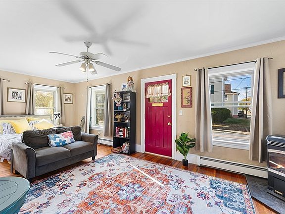 Beautifully maintained 3/4 bedroom colonial on corner lot in convenient location close to everything! Eat-in kitchen boasts custom hickory shaker cabinets & brand new fridge. Adjacent to the kitchen is a dining room (currently bedroom) and full bath. Sunny front living room showcases beautiful hardwood floors, elegant crown molding, and a newer cozy Harman pellet stove. Upstairs is 3 spacious & freshly painted bedrooms, including a primary suite with walk-in closet and full bathroom. Original hardwoods have all been exposed & refinished adding to the home's charm. Three-season porch equipped with a gas stove leads out to a wrap-around Trex deck. Detached garage and fenced yard provide convenience and privacy. Plenty of extra storage space in the expansive basement. Updated electrical & plumbing, new gas furnace (2019) and new roof (2020). This home is ideally situated near downtown Attleboro, Sturdy Hospital, Municipal pool, multiple parks, schools and train.