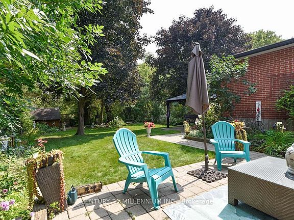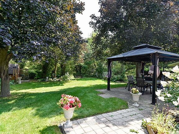 Fantastic location! Set on a private and mature 65 ft x 150 ft lot, backing to the Humber River, with fabulous curb appeal, is this charming 3+1 bedroom brick bungalow with in-law potential in the lower level. The Foyer offers slate flooring and garage access. A spacious Living room with hardwood flooring is adjacent to the formal Dining room with parquet flooring and enjoys views over the front yard. An oak Kitchen has a built-in desk, tile backsplash, and a sliding door walk-out to a convenient side deck. There are 3 spacious bedrooms and a 4-piece main bathroom. The lower level features a large Rec room with a brick, floor-to-ceiling gas fireplace, laminate flooring and above-grade windows. There is a 5-piece bathroom with double sinks, a bedroom with broadloom and mirrored closet, storage, and a bright and spacious Kitchen with a pantry. Enjoy the sound of the Humber River flowing from the private backyard with mature trees, stone walkways, and patios with a pergola, and beautiful perennial gardens. Garage door (2023), Eaves & Shutters (2018), Pro Guard gutter guards (2017), Washer & dryer (2024), Living & Dining windows & Kitchen sliding door (2016). Enjoy being within walking distance to downtown Bolton amenities, coffee shops, restaurants, Dicks Dam Park, Foundry Park, the Humber Valley Heritage Trail, hiking trails, and more! Close to the Albion Bolton Community Centre, Humber River Centre, Public Transit, and schools. 20 Mins to Pearson Airport. 40 mins to TO. Pride of Ownership!
