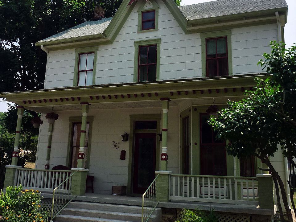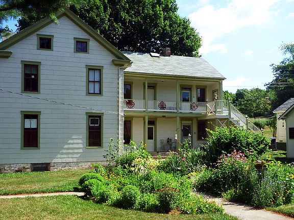 Absolutely charming home with front and side porches and balcony - lovingly remodeled to incorporate modern conveniences but keep turn of century touches. Main level bedroom with full bath now used as parlor/office. Full floored attic for storage. Sited on a side street on a landscaped acre lot - fish pond, original summer kitchen, shed - even an outhouse! Fenced area for pooches or play. Wow!