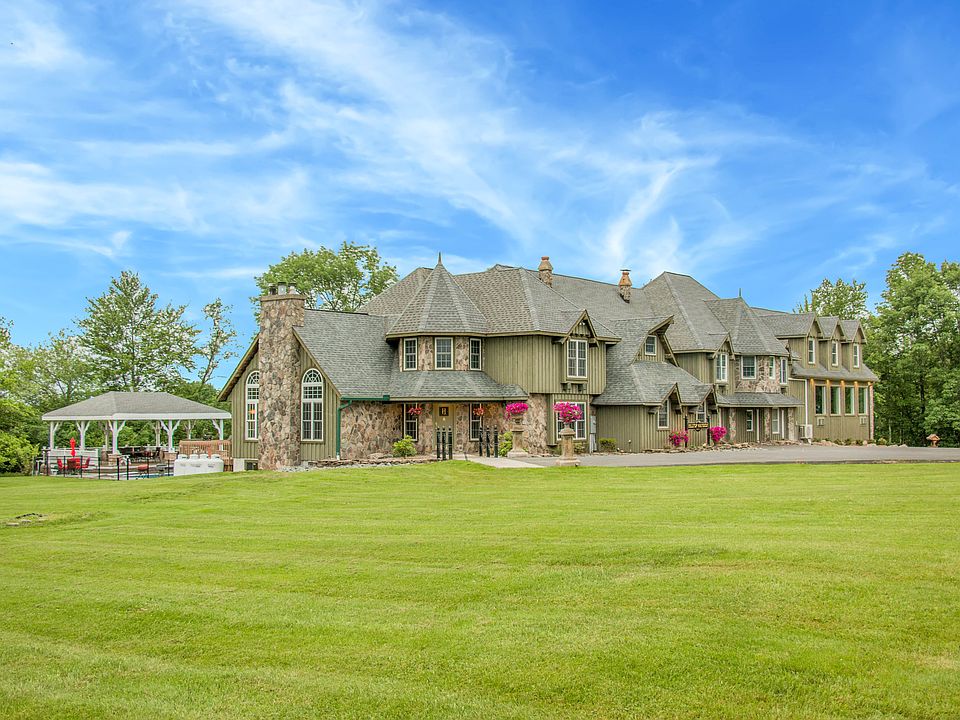 11 bedroom mansion with theater room, outdoor pool, hot tub, banquet area, high-end gameroom, billiard room, fitness room, beautiful stone fireplace, and 2 large kitchens with custom granite countertops. Private road and mountain views.