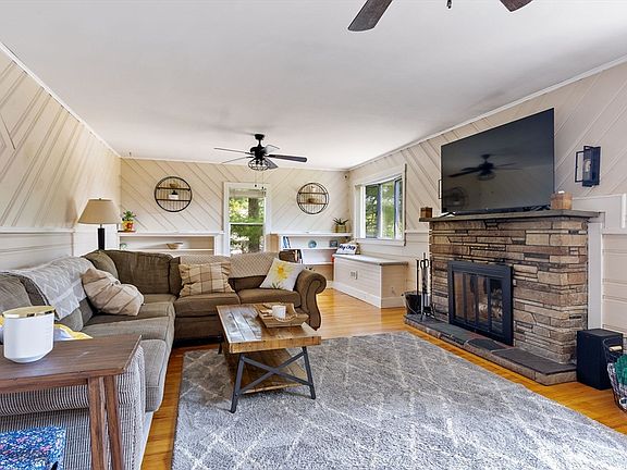 Discover the comfort and convenience of single-level living in this charming, well-maintained ranch-style home located just outside Billerica Center. The spacious living room, adorned with a cozy fireplace, gleaming hardwood floors, built-in shelving, and ceiling fans, is further enhanced by central air conditioning. The modern kitchen, featuring stainless steel appliances, seamlessly connects to a delightful dining area. The main floor is complete with three comfortable bedrooms. The basement provides valuable additional space, including a wet bar, an extra bathroom, and a laundry area. Nestled on just over half an acre between the Concord River and Billerica State Forest, this home offers a serene setting with easy access to highways, shops, and restaurants. Experience the perfect blend of comfort and convenience in this inviting residence.