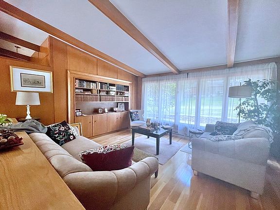 Fully renovated ranch with privacy from all sides. BEST house on the street!! Brick exterior, lots of new carpentry, cypress beams, raised walnut paneling, cathedral ceilings, built-in custom oak bookshelves, extended cabinets, one of a kind architectural staircase/wrought iron railings, oak trim through. 4 Large Bedrooms accommodating king size beds! with cedar closets, high ceilings. All rooms have great private views; open concept living /dining with a breakfast nook, wall to ceiling extra large casement windows, 2 Anderson sliders, 2 pocket doors, 5 entry doors, 2 back-yard stone stairwells, 2 decks overlooking very private yard with 190ft of natural stone retaining wall. Lots of storage-13 closets! 2 mins to all stores, highways. Large driveway for 4+ 1 car garage.Updated kitchen, new baths, new floors, new walls, new decks, new entry walkway, new roof, new water heater, new fence, updated electric, plumbing, working fireplace,AC, GAS Het, beautifully landscaped. Won't last!!!