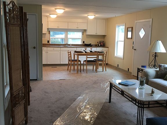 This recently remodeled home includes the following features: new roof-over roof, new vinyl siding, new stairs, new skirting, new windows and doors, fresh paint, new carpet and lino, new bath, new kitchen cabinetry and counters, oil heat. This beautiful two-bedroom, one-bathroom home has just been remodeled inside and out. Interior of this home has an open floor plan giving you lots of space. A bright inviting kitchen with coat closet. Bring your own appliances to this new again home. Washer/dryer hook ups in place.