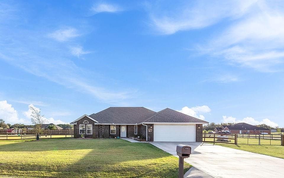 Welcome to 36 Independence Circle! This gorgeous home sits on a one acre corner lot in the desirable Veteran's Acres, just 5 minutes outside of Altus and AAFB. 4 Bedrooms, 2 Full Bathrooms and just under 2000 sq ft of open living space with sightlines from the kitchen to the dining and living area with vaulted ceilings. The split bedroom floorplan has the large primary bedroom off the kitchen space with a beautiful on suite with a stand alone soaking tub and tiled shower! On the opposite side of the home are 3 bedrooms, all with big closets and a full hall bathroom. Fully fenced yard with drive thru gate, extended patio and pergola, and its perfect location for chickens. Bonus oversized detached garage (500 sq ft) with attic storage. Septic/Propane. POS RO System. Water softener. Electric Tankless HWH. Generator hookups.