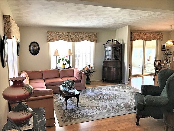 RESALE HOME!!Hillcrest is for People 55+ One Owner Home! A 2002 Branchton Model with some great features. Like all of Hillcrest's Homes, it is a 2 Bedroom/2 Bath home, one being a Master Suite; a king-size bed fits! In the guest bath there is a therapeutic walk-in tub. The Kitchen has White Cabinetry. The Livingroom, Diningroom and Hall are Oak Pergo Hardwood. It has our Signature 14' x 14' All Season Sunroom flanked by the Desirable Privacy of Woods-it's a Beautifully Landscaped Lawn! A Separate Laundry Room leads way to the Insulated and Finished 2-Car Garage with a nice Level Driveway for the Compliment! By The Way?You will Never Have Loss of Power ? Does a Whole House Propane Generator raise your eyebrows??? Hillcrest is for People 55+