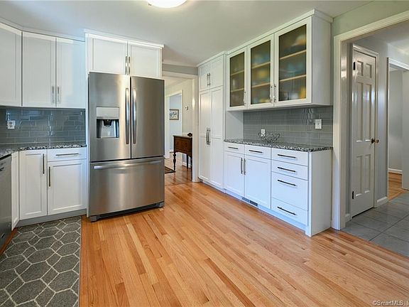 Central Cheshire, 4-bedroom, 3 1/2 bath colonial. This updated 3,300+ s.f. home is situated on a level, .64 acre lot at the end of the cul-de-sac. Nicely landscaped, offering curb appeal and a private backyard. On the first floor, youll love the renovated kitchen offering white cabinetry, granite counters, coordinating tiled backsplash, and stainless appliances. Wrap-around counter to the family room is perfect for entertaining. The family room offers space for casual, everyday dining, a slider to the private back deck with gas hookup for the grill, gas fireplace, and plenty of room to hang out with family and friends. Easy access to the bath, laundry room and garage entry. Plus, stairs to an amazing bonus room over the garage (2006 addition) with full bath - perfect for a media room, kids play room, exercise room, or au pair or in-law suite. The living room and formal dining room complete the first-floor level with hardwood flooring running throughout. Four bedrooms on the second floor include the primary bedroom with full bath (double vanities and lots of closet space!). Three generously-sized bedrooms and updated main bath complete the 2nd floor. Hardwood flooring throughout the 2nd floor bedrooms too! More finished space in the lower level. Deck out back for grilling and patio for the firepit! Freshly painted throughout. Two-car garage. Central Air. City water. See Matterport video for full tour!