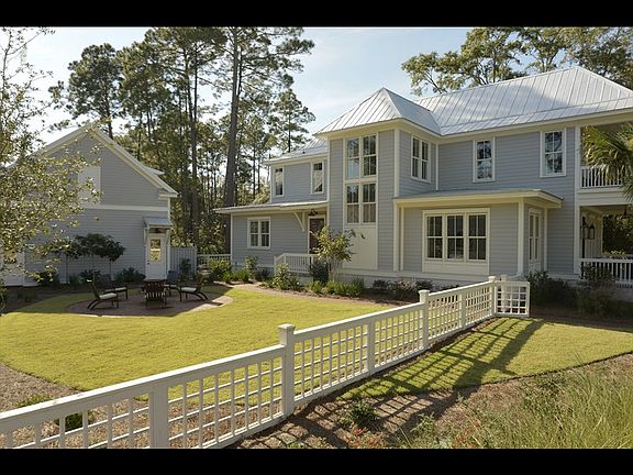 In the timeless neighborhood of River Road in Palmetto Bluff, this newly built custom home sits on a corner lot, featuring breathtaking park views and nearby access to the gorgeous inland waterway, 1.8-acre stocked pond and future residents-only amenity center. With just over 4,700 gross square-feet, this home is beautifully appointed with brick entry steps, gas lanterns, a spacious courtyard and a large screened-in porch with fireplace. Keeping traditional Lowcountry architecture in mind, this house was constructed using 5-V metal roofing, Hardiplank exterior siding and trim, raised slab foundation with Tabby Stucco finish, Tabby concrete porches and a detached two-car garage. The intricate detail on the exterior of the home extends into the interior space as well featuring stained entry doors, site-finished reclaimed Beechwood floors, stone countertops, Carrara marble tile kitchen backsplash, custom cabinetry in both the kitchen and bathrooms, and 42-inch wood-burning fireplace also plumbed for gas. This substantial four-bedroom, four-and-one-half-bathroom home with additional bunk room and guest room above the garage boasts an adequate 4,100 conditioned-square-feet layout with first and second floor master suites, Sonos AV system wired throughout the home, Kohler plumbing fixtures, Rinnai tankless water heaters, and a spacious guest house above garage. With an impressive six bedrooms, this is easily one of the most thoughtfully designed homes in The Bluff and is guaranteed to provide comfort and relaxation to owners and guests for years to come. Palmetto Bluff is situated in the Lowcountry of South Carolina between Charleston and Savannah, Georgia, Palmetto Bluff is the largest remaining waterfront property on the East Coast and part of the Crescent Communities residential real estate portfolio. Currently evolving as a residential community and conservation preserve, the 20,000-acre development is surrounded by 32 miles of riverfront and features extensive nature trails; a vibrant Village center complete with river access, boat storage and canoe club; a distinctive food and beverage program; the AAA Five Diamond Inn at Palmetto Bluff; and a Jack Nicklaus Signature Golf Course. An array of southern-style residential neighborhoods ranging from multi-million dollar legacy family compounds to more traditionally sized, single-family lots are currently available. For more about Palmetto Bluff, please visit www.palmettobluff.com.