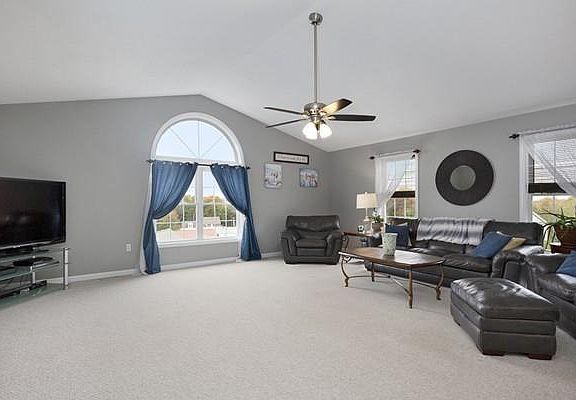 - Liv Dscrp: Flooring - Wall To Wall Carpet, Fireplace, Ceiling - Cathedral, Ceiling Fan(s)