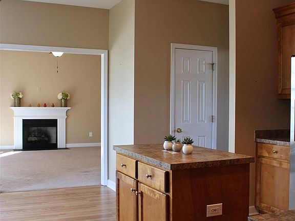 - Kitchen: Counter Tops-Formica, Eat In, Island, Floors-Hardwood, Cabinets-Stained, Ceiling Fan