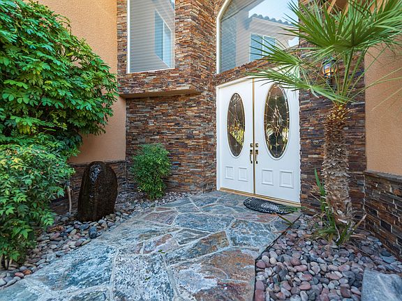 The pride of Victoria Falls is showcased in this perfectly appointed Emperor Model executive home that features 5 bedrooms and 4.5 baths in over 5000 square feet. Enter through the dramatic foyer with vaulted ceilings and open staircase. Gorgeous wooden floors lead to Formal Living and Dining spaces, complete with bar, ready for entertaining. The home boasts a flawless chef's Kitchen with top of the line appliances, and offers abundant work surfaces, plenty of storage, pantry and a center island. There is a breakfast bar as well as an eating area. The Family Room and additional public spaces are adaptable to your lifestyle and use. Huge master suite on main level with fireplace and adjoining office, plus a spa like bath and impressive closets with built-ins. The covered patio includes a built in BBQ, that overlooks the over-sized lot that sports a generous sized pool with spa and rock spillway. Plenty of lawn for pets or play. Well maintained property, also includes a Solar System.