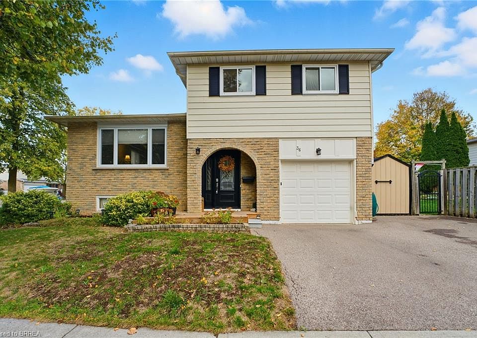 Welcome to 36 Kings Hill Lane -- a family retreat in West Brant! Nestled in the highly sought-after Strawberry Hill neighbourhood of West Brant, this beautifully maintained and move-in-ready side split is the perfect home for families seeking comfort, charm, and convenience. Located on a quiet, mature street and just steps from top-rated schools, parks, shopping, and all major amenities, this property offers everything you need in one of Brantford’s most desirable communities. Step inside to a bright and welcoming foyer that leads a few steps up to the spacious living and dining area, filled with natural light from the large front windows. The kitchen connects seamlessly to the dining room for effortless entertaining and features newer appliances including a fridge (2023), stove (2023), and dishwasher (2025). The upper level offers a primary bedroom complete with a walk-in closet and 2-piece ensuite bathroom. Two additional bedrooms and an updated 3-piece main bathroom (2018) complete this level, making it perfect for families or guests. The lower level boasts a cozy family room highlighted by a beautiful brick fireplace, providing the ideal spot for relaxing evenings. From here, sliding patio doors (2013) lead directly to the outdoor living space, perfect for summer BBQs or gatherings. The basement provides additional potential with a laundry area, storage space, and a rough-in for another bathroom. Enjoy the outdoors in your fully fenced backyard, featuring a covered gazebo, lush gardens, and plenty of space for kids or pets to play. Additional updates include furnace & AC (April 2021), front door (2020), and insulation in attic (2023). With its spacious layout, thoughtful updates, and unbeatable location, 36 Kings Hill Lane is the perfect place to call home for those looking to enjoy the best of family living in West Brant. Book your showing today!