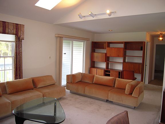 Beautiful Well Cared, One Level, Ranch Style, End Unit Condo. Open Floor Plan w/ Very Large Rooms, Vaulted Ceilings, Sky Lights, Wood Burning Fireplace in Living Room and a Huge Unfinished Basement. Nice Rear Deck and Grassy Yard.
