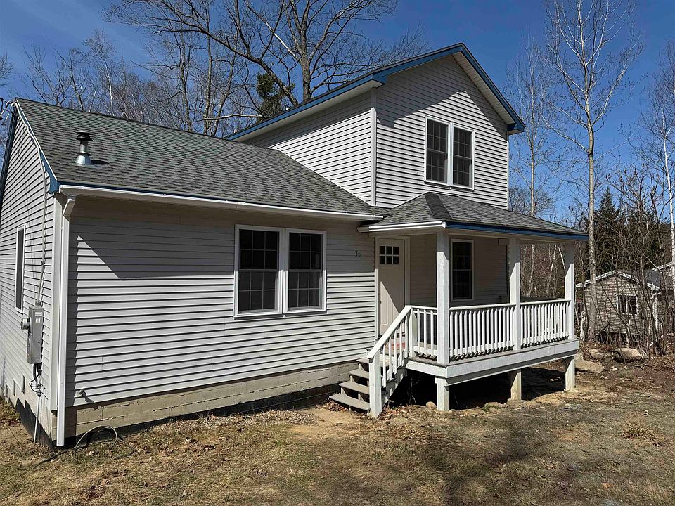 Wow! 3 Lots Merged together! This 2022 beach-access custom Contemporary features vaulted natural wood ceilings. The two-bedroom home is situated on a large .79-acre lot with 212' frontage on Larry Drive and 80' frontage on Scott Drive. There is plenty of room to build a detached garage; choose to clear the wooded area in back for a larger yard area. The main floor features a master bedroom and large master bath. There is a covered porch entry in front; walk into the open concept living room, kitchen and dining area. The living room has an attractive tiled hearth with a pellet stove for back-up heat. The custom-built kitchen has granite counters, custom-made oak cabinets, a 5-burner electric cooktop on the kitchen island and a convection wall oven. The dining area opens onto the 16' x 10' sunny back deck. At the top of the second floor stairs, you will find the laundry area with washer and dryer and a second bedroom with an attached full bath. The 34' x 24' walk-out basement is unfinished, with two basement windows and a high ceiling, that would be ideal for a suspended ceiling if you choose to finish this area. The Alton Shores Association yearly fee of $275, offers you access to beaches on both Sunset Lake and Hills Pond as well as access to a boat launch on Hills Pond. Sign on property!