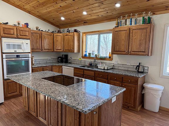 - Dining Area, Hearth, Kitchen Island, Kitchen/Dining, Kitchen/Family, Natural Woodwork, Indoor Storage, Vaulted Ceiling(s)