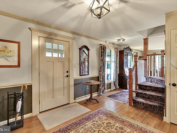 Welcome to your dream home featuring 5 private bedrooms and 3 full bathrooms, plus a half bathroom conveniently located on the main level. Step into the inviting foyer and find a dedicated office space with beautiful double doors and plenty of natural light. The main floor is complemented by a mix of stunning hardwood floors and engineered flooring. The heart of the home is the exquisite kitchen, showcasing Kountry Kraft Custom Cabinetry, a new gas stove, and elegant granite countertops. With a mix of walnut and painted cabinets, flip flop cabinets, a double sink, and a cozy coffee station, this kitchen is both functional and stylish. The spacious laundry room, located on the main floor, features Adelphi Kitchen Cabinets and a gas dryer, adding to your convenience. Entertain guests in the large dining room with a gas fireplace or relax in the living room/great room with a wood-burning fireplace for those cozy nights. This home offers ample storage with three closets on the main floor and a basement with additional room for gatherings. The master bedroom is a retreat in itself, complete with a granite countertop, double sink vanity, ceramic tiles, a walk-in closet, and a relaxing jacuzzi. Upstairs, two bedrooms each have full bathrooms, while the refinished hardwood floors and large bedroom closets provide elegance and comfort. A linen closet in the hallway adds even more convenience. Enjoy modern comforts with a brand-new HVAC system providing gas heat and central air. The two-car garage includes new breakers for generator hookup, and there’s extra storage above the garage. The outdoor space is just as inviting, with a screened patio and a large backyard featuring a tranquil pond. Additional features include a full-length front porch with Mahogany decking, a roof with copper flashing and gutter guards, and replacement windows throughout. Don’t miss this opportunity to make this exceptional home your own!