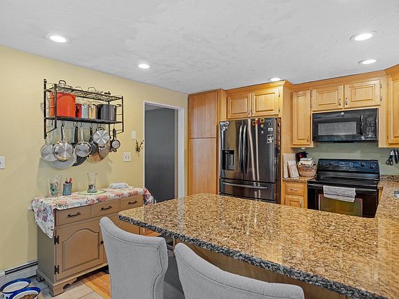 Wonderful spacious home on a beautiful lot in a desired location! This three bedroom, two bath Ranch is on 1.65 acres! Gorgeous maple cabinetry in the kitchen with granite countertops, pantry, stainless appliances and breakfast bar. Dining room with ceramic tiled floor and glass sliding door access to back deck/yard. Charming and spacious living room with great natural light. Primary bedroom with double closets. Two additional bedrooms with plenty of closet space and full bath on first floor. Finish basement includes a family room with beautiful hearth and pellet stove, two additional "bonus rooms" one is currently being used as a bedroom, closet space, 3/4 bath and laundry room/utility room/storage. This would be perfect for a potential in-law apartment (with town approval). This home provides the perfect floorplan to diversify many living situations for the potential buyer, one small step to access the basement finished space. Beautiful yard with fruit trees and blueberry and raspberry bushes. Several patios/decks with a hot tub. Brand NEW leach field. Carport and large shed for additional storage. This property has it all! Within minutes to the Town Beach on Winnisquam. Close to all Lakes Region Amenities. This will not last long!