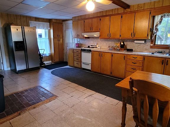 This 3 bedroom, 1.5 bath cape sits on .75 acre giving you an expansive lot for a garden, playground, etc. The property has a BBQ area with a brick fireplace ready for fun cookouts plus a bean hole pit, a 2-car garage and an outbuilding. It has a large eat-in kitchen with a brick hearth and spacious living room. The first-floor bedroom with full bath is located off the kitchen with direct access to the deck. Upstairs you have a nice bonus area that could be converted to a bedroom plus a deck for relaxation. The half bath with claw foot tub could easily be converted to a full bath by adding a sink. This property is being sold 'as is'. Request property disclosure for additional information. List #2242