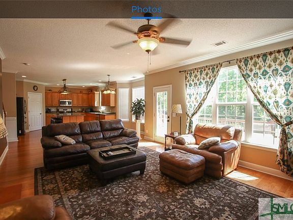 Motivated Seller! Enjoy an easy 20-minute commute to Downtown Savannah or 10 minutes to Richmond Hill and the luxury of a large 5 bedroom/2 bonus room home on a 1/2 acre with no City Taxes! Finishes include hardwood flooring on main, stunning columns at the Entry, Den and Separate Dining Rooms. Huge Great Room at rear of home has gas fireplace with mantel & view of woodlands. The adjoining gourmet kitchen has solid surface counters, stainless appliances, island, breakfast bar & breakfast room. The Master, 3 more bedrooms, 2 full baths and a large loft area are on the second floor, and a and laundry room. The third floor has 1 bedroom, another full bathroom and bonus room. The home has grand stature from the front with elegant dormers and wrap around front porch. At the rear is a broad deck with built-in seating. The 1/2 acre lot has a fully fenced rear yard with metal fencing & an irrigation system fed by a shallow well. Motivated Seller!