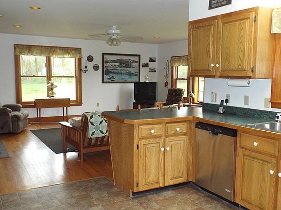 Premium Deerfield Ranch! NOT your "average ranch", this custom one owner home offers hard to find spacious and gracious one floor living. The best of traditional materials and quality workmanship combine w/flowing open floor plan for modern living convenience. The heart of the home is oak raised panel country kitchen with breakfast bar, opening to 18 x 26 family room with fireplace and French door to the back porch. There is a separate formal dining room and living room, running the entire width of the house, which opens to lovely front porch. Master suite includes dedicated full bath and laundry. Oak floors throughout. Present owner has operated a hair salon, which will become your bonus room or home office with separate entrance & half bath. Full basement provides more than ample room for projects, storage, or playroom. Solar roof panels reduce electric bill. Sited on 2.53 flat open acres, abuts farmland, westerly views & sunsets. 2 storage sheds. Invisible fence.
