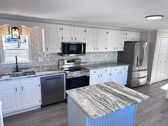 Completely remodeled home offers affordable living! This home has 2 Large bedrooms, and one has a half bathroom. A bright and sunny mudroom helps ensure to keep snow/mud out of the house. Both the kitchen and living room are filled with natural light due to the abundance of windows. Open concept kitchen/dining with access to the new deck out back. Granite counters, all new appliances, and new LED lighting. LArge shed with power is perfect for storage or hobbysists.