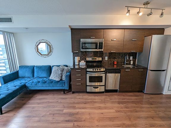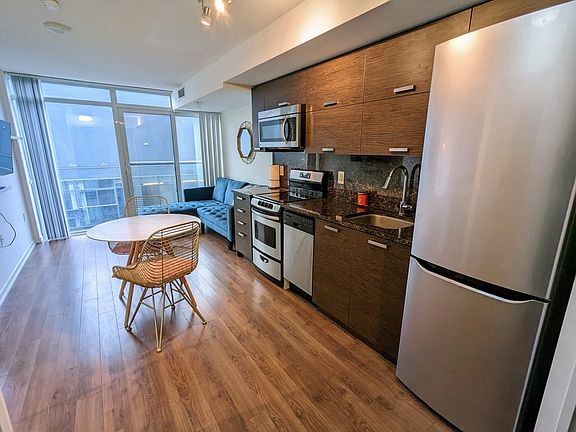 Welcome to 36 Lisgar Street, a bright and modern 1-bedroom, 1-bathroom condo located in the vibrant heart of Queen West. Just steps from Trinity Bellwoods Park, trendy restaurants, cafes, boutiques, groceries, and with easy access to King West and Liberty Village, this location offers the best of downtown living. The unit features a spacious primary bedroom with floor-to-ceiling windows and a double closet, an open-concept living and dining area, and a fully equipped kitchen with full-sized appliances and a dishwasher. Enjoy access to excellent building amenities, including a gym. Offered fully furnished with a queen-size bed, sectional sofa, digital TV, and move-in essentials perfect for a single professional seeking comfort, convenience and an urban lifestyle. Inclusions: Fridge, stove, dishwasher, microwave, washer/dryer, all window coverings and hardware Utilities: Central air, heating, and water included. Furnishings: Fully furnished and move-in ready Availability: Immediately First and Last month's rent due at signing, rent payment made via etransfer accepted. Tenant pays hydro and internet.