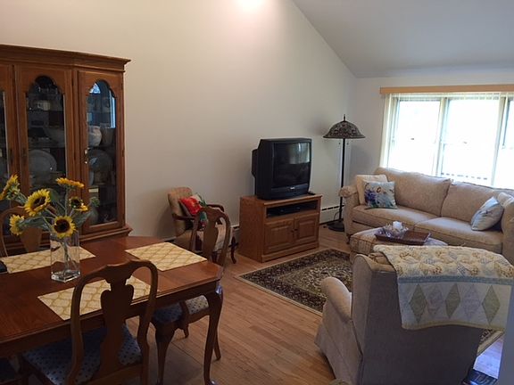 Charming ranch situated on over half an acre! Living & dining room has open floor plan with hardwood floors thoughout, cathedral ceilings, and recessed lighting. Kitchen with oak cabinets, granite countertops with tile backsplash, pendant lighting and stainless steel appliances. Large bright family room addition (23 ft x 20 ft) with french doors to large, EP Henry paver patio. 2 bedrooms and 2 full baths. Attached 2 car garage. Basement with washer and dryer. Beautiful private backyard that's completely fenced with 6 ft Cedar fence and 6 ft top-of-the line Jerith aluminum fence. New electric hot water heater, Upgraded 220V electric service.New septic system (2015). Private well. Oil heat with efficient hot water baseboard. Propane gas stove.Beautiful park-like setting on a quiet cul-de-sac