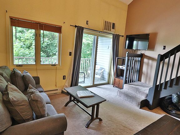 Here is your opportunity to own a one-bedroom condo just across the river from Loon Mountain’s South Peak slopes for under 200K. Very nicely appointed, well cared for condo in The Lodge at Lincoln Station with an upper-level loft bedroom. Having the upper-level bedroom gives you the high, vaulted ceilings making the condo seen much larger, open and lighter. Updated bathroom vanity, sink, faucets, toilet kitchen counters, cabinets, flooring, etc., fully furnished (with a queen-size pull-out sofa in the living room), equipped and ready to use. Fantastic amenities such as indoor and out door pools, hot tub, game rooms and indoor storage.