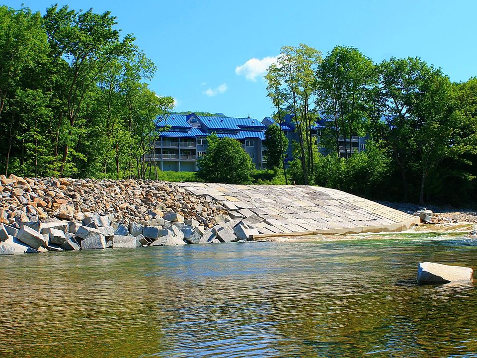 Riverfront Condo Unit south facing Primary Bedroom with a bank of Windows overlooking the River and the South Peak Ski Slopes. Main floor , no stairs. Completely Remodeled Floor plan, new flooring, Cabinet, and appliances, with exceptional common area amenities... indoor & Out door pools, Sauna, Hot tub, Great room, game rooms, and more. No Rental restrictions and walking distance to several area dinning favorites.