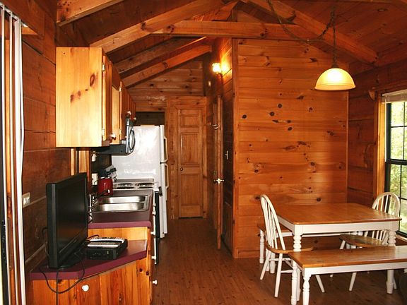 Wishing for a log cabin, a mountain retreat , a 'tiny house', or a vacation rentals investment? You can have all that in one, at a bargain price, on a 3/10 acre wooded lot in the charming Village of Linville Falls. This sturdy 432 sq ft park model, built in 1997, boasts a wraparound deck, covered and open, that overlooks a pleasant backyard. It provides a bedroom, bath, and great room with kitchen, in log cabin mountain style. The little cabin can be purchased separately for $57,450, or together with the beautiful Craftsman cottage at #16 Luther Franklin Lane (MLS 209798) for $245,500. Come live and play in NC's most beautiful wilderness areas -- the waterfalls, caverns, and riverwalk/picnic park are all within 3 miles. Banner Elk and Sugar Mtn (skiing!) are a 20-minute ride away, or hop onto the Blue Ridge Parkway to be in Blowing Rock in 30 minutes.