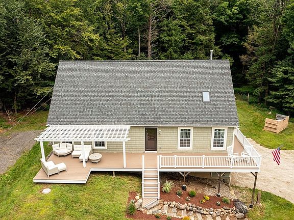 TODAY YOU'VE FOUND YOUR PERFECT HOME You'll find this completely private and move in ready contemporary Cape instantly appealing, and anything but traditional! This extensive and well-cared for home provides a blend of indoor and outdoor living at its best. Offering a versatile floor plan, you'll love the light and air feel that's enhanced by the oversized windows and vaulted ceiling. Open and spacious living area with hardwood flooring sliding doors to wraparound deck and stately gas fireplace. The kitchen offers a convenient breakfast bar, granite counters, ample cabinets and all appliances. Two large bedrooms and a stylish full bathroom round out the first floor. The second floor provides a large primary bedroom with new mini-split and a new half bath, and a small loft that could make an idea home office. The finished lower level provides a fantastic family or media room with full bar, electric built-in fireplace and radiant heat. Too many perks to mention - THIS WILL NOT LAST!
