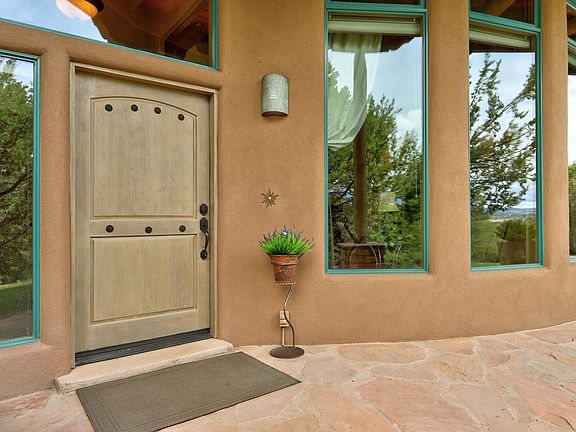 Discover this exquisite custom Pueblo-style home, where luxury meets comfort in every detail. Nestled on 3.34 acres, this captivating residence boasts a seamless open floorplan accented by soaring high ceilings and large windows, bathing the interior in natural light. Enjoy the elegance of tongue and groove ceilings, Vigas, and stunning Kiva fireplaces prominently featured throughout the home. The chef's kitchen is a culinary dream with granite countertops and a butler's pantry, while the master suite invites relaxation with a steam shower and jacuzzi tub. Three covered porches providing exceptional outdoor living space. Additional highlights include workshop space, a radiant heat system, and ample garage space, all meticulously designed for contemporary living.