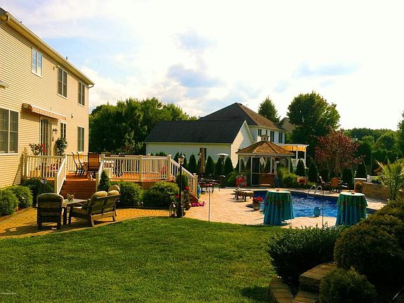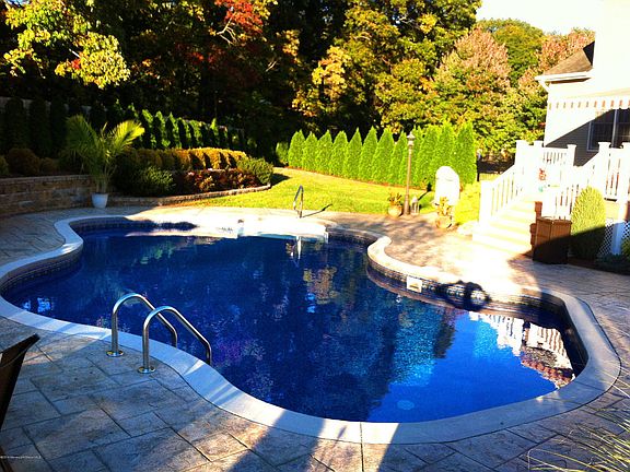 Turn key 4 bedroom 4 bath culdesac located Lincroft center hall colonial boasts 9 ft ceilings, 2 story foyer, decorative moldings, hardwood floors, eat in gourmet kitchen with custom cabinetry, granite counter tops and Italian tile work. Fully finished heated basement with surround sound, half bath, recessed lighting and wet bar. Enjoy a picturesque resort-like setting while entertaining friends and family for years to come from the composite deck overlooking the stamped concrete patio and heated in-ground salt water pool.Under ground sprinklers, motorized awning over deck, Power winch for oversized foyer chandelier, Professional landscaping, alarm system, walk in closet in master bedroom. Ideal for NYC commuting. A short distance to Lincroft/Red Bank shopping. School bus stop nearby.